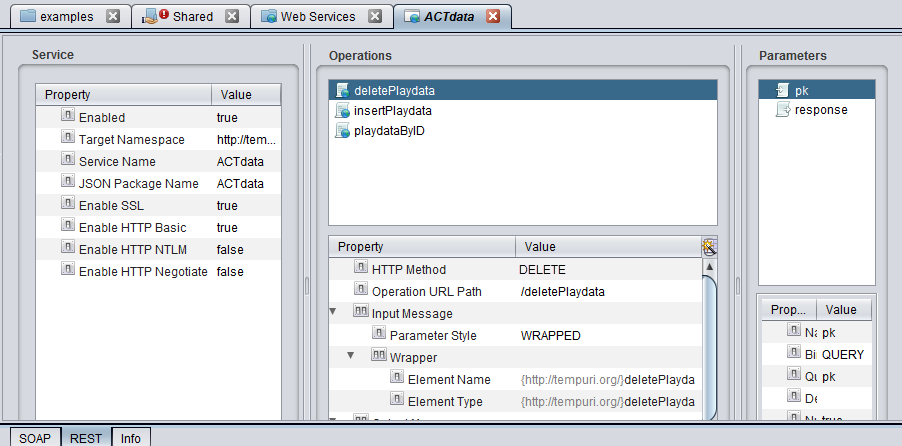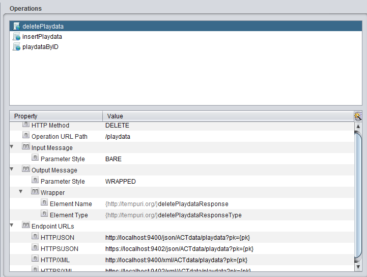 3. From the upper part of the Operations section, select the deletePlaydata procedure.