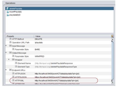 4. In the lower portion of the Operations area, double click to select the value of the HTTP/XML endpoint.