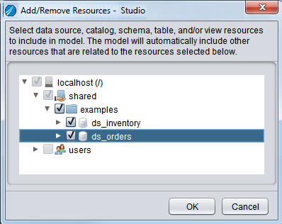 b. Expand the Examples directory and add a check mark next to ds_orders.
