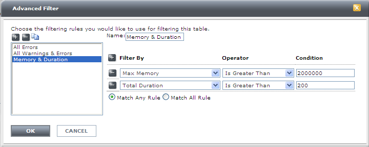 7. Select Match Any Rule or Match All Rules to specify how you want the filter to work.