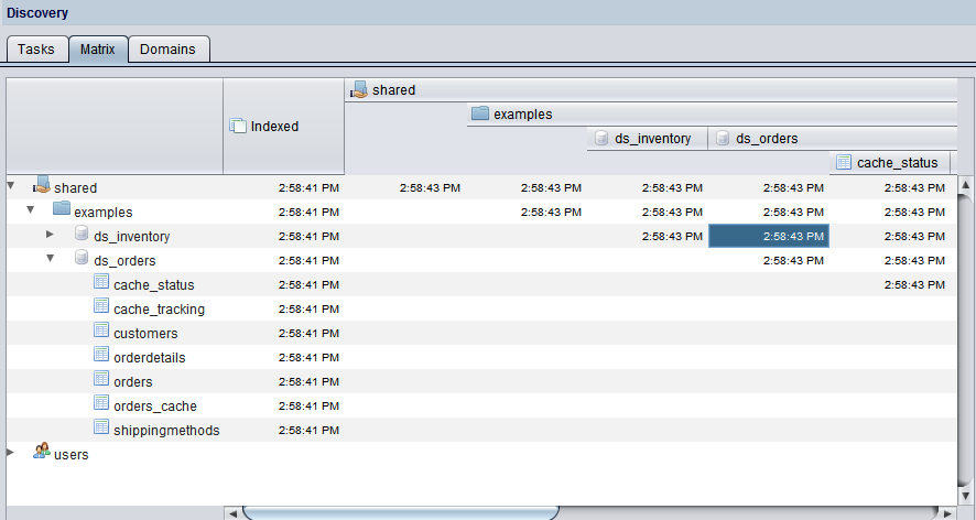 Indexed列には、インデックスが作成されたすべてのデータリソースの日付と時刻が含まれます。 2つのデータリソースの共通部分に日付と時刻が存在する場合は、それらが比較され、その日付と時刻の関係がチェックされたことを意味します。