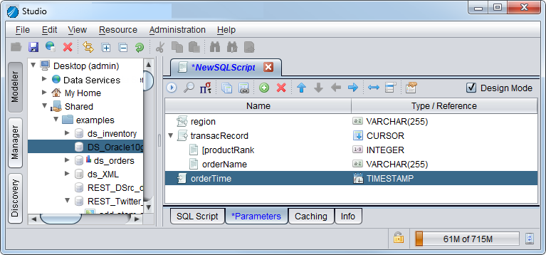 [Design Mode(設計モード)]をこのプロシージャで使用すると、プロシージャの入力/出力パラメーターを作成できます。