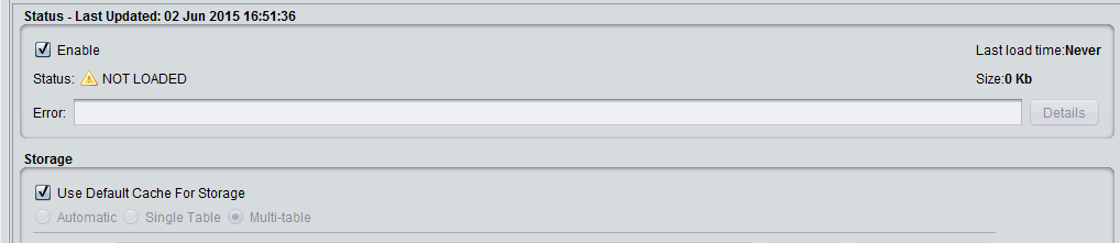 4.[Status(ステータス)]で、[Enable(有効にする)]チェックボックスをオンにします。オフのままにした場合は、引き続きキャッシュを定義できますが、[Enable(有効にする)]チェックボックスをオンにするまでキャッシュはアクティブになりません。