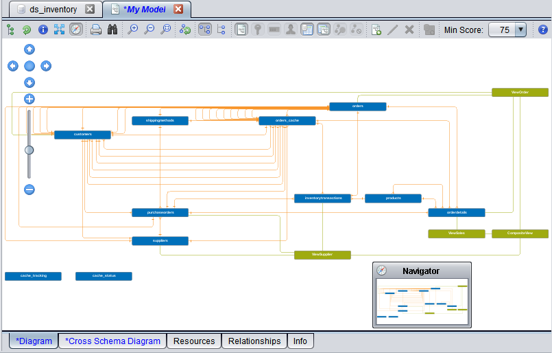 Note: Only one data source, ds_inventory, is included in this model, along with any other resources related to it. That is because some tables in ds_orders are related to tables in ds_inventory, they are now included in the model.