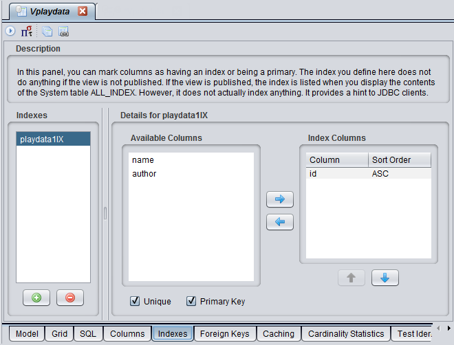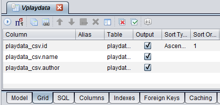 4. In the View editor for Vplaydata, drag the playdata.csv object onto the Model tab.