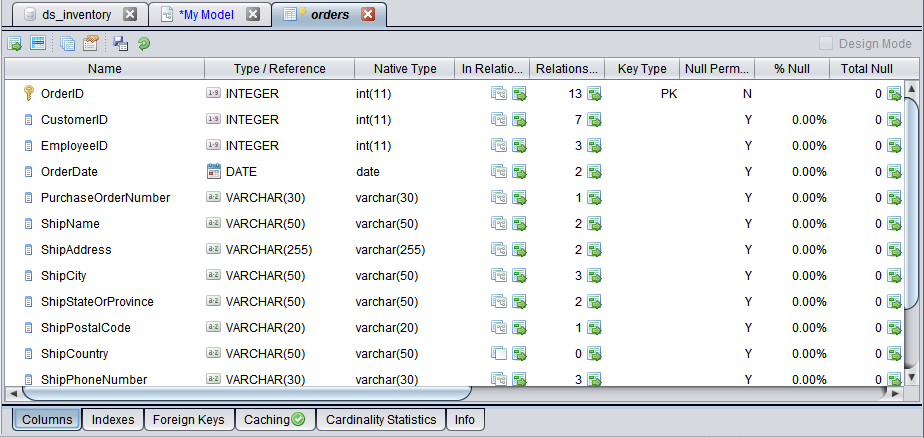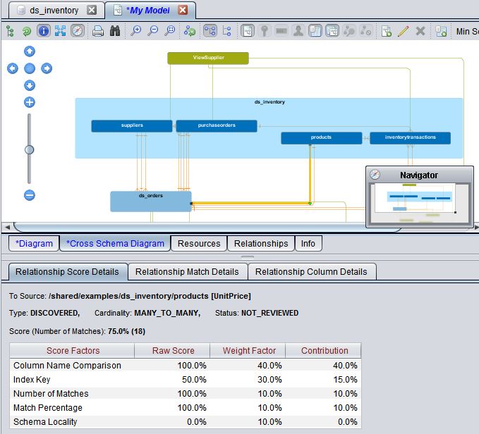 On both the model Diagram and Cross Schema Diagram, you can drill down for details about the tables and relationships.