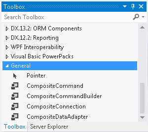 7. Notice that the Composite components appear in the Toolbox panel rolled under the General tab.