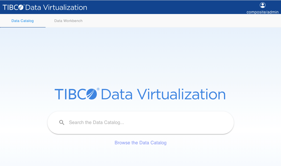 The Search tool in the Data Catalog tab on the landing page allows you to perform a simple keyword search for any resource that you have access to view within the TDV system. Refer to the section Searching the Data Catalog for more details about the Search tool,