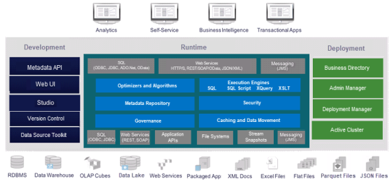 TDV is Java-based, enterprise-grade middleware whose modular structure supports all phases of data virtualization development, run-time, and management.