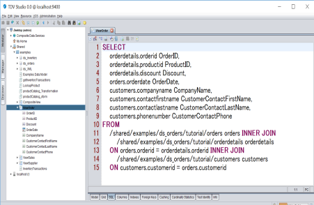 The TDV SQL/Text editor lets you execute SQL statements that are not bound to a resource. You can define and execute any SQL statement that can be executed for a composite view.