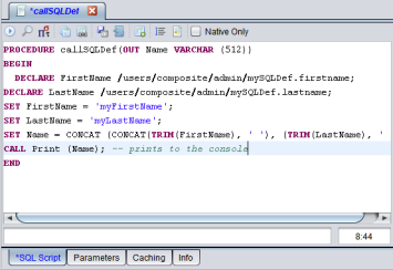 | 2. | Reference the SQL definition set in the PROCEDURE using the TDV resource path and name. |