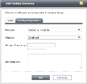 ドロップダウン リストからモジュールを選択して、実行可能にし、ステータスを設定します。 |