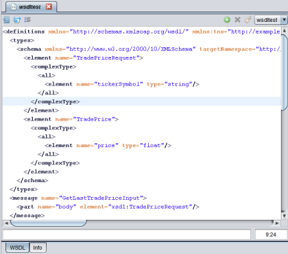 注: wsdltest 定義セットで定義されている TradePriceRequest や TradePrice といったタイプ エレメントも参照されます。
