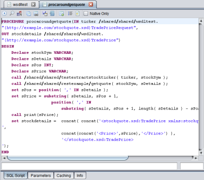 プロシージャまたはビューで WSDL 定義セットを使用できます。この例は、プロシージャで WSDL 定義セットを使用する方法を示しています。