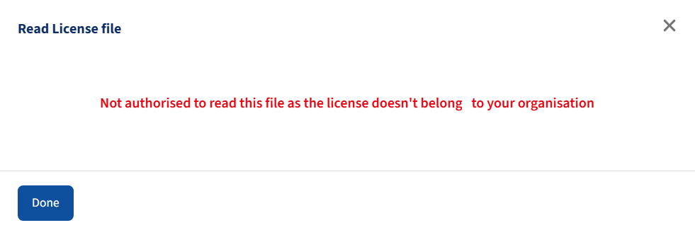 - When a customer is trying to view the license file from another customer it will show a message like this:
