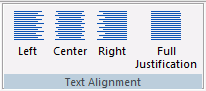 [テキスト配列] グループには、[左揃え]、[中央揃え]、[右揃え]、[両端揃え] コマンドがあります。これらのコマンドは、テキストボックス内のテキストの位置を揃えます。下図は、[テキスト配列] グループを示しています。
