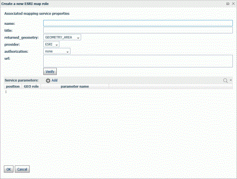 ESRI 地理的役割を追加するには、地理情報構成エディタで [ESRI マップの追加] をクリックします。