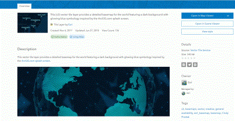注意:ベクターベースマップが複数レイヤで構成されている場合、ArcGIS Online のベクターベースマップページに、各レイヤのリンクが表示されます。
