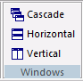 [ウィンドウ] グループを使用して、JOIN に現在追加されているデータソースの表示方法を選択することができます。これらの表示方法には、[重ねて表示] (デフォルト)、[横] (横に並べて表示)、[縦] (縦に並べて表示) があります。下図は、[ウィンドウ] グループを示しています。