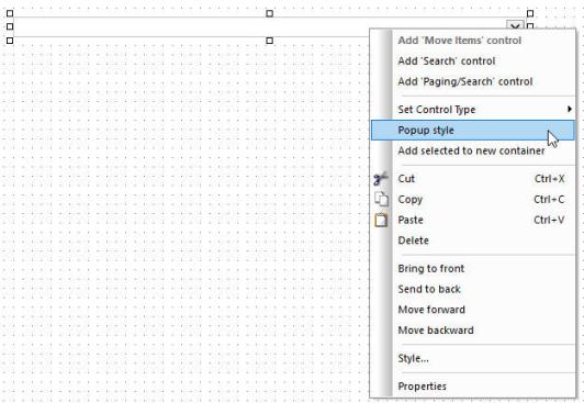 - Right-click the control and click Popup style.
