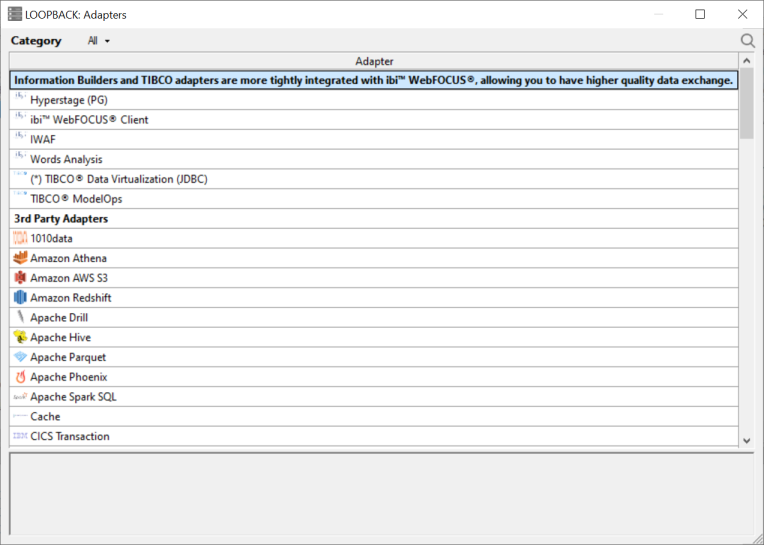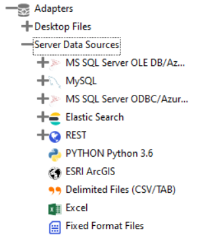 The Adapters folder shown in the following image allows you to add and configure adapters from the ibi Data Migrator desktop interface.