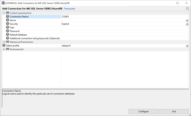 the adapter and click Configureor double-click the adapter that you want to configure, for example MS SQL Server® ODBC/Azure DB.