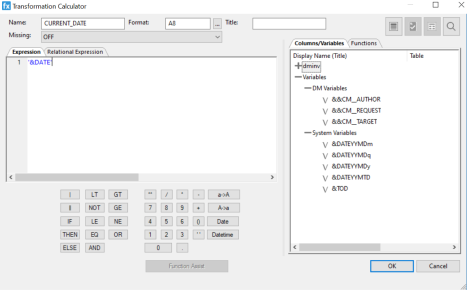 Note: If you do not supply a format, the ibi Data Migrator desktop interface will automatically provide the format based on the expression. Similarly, if you supply the wrong format, the desktop interface replaces it with the correct format using a pop-up notification to advise you of the change.