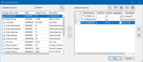 - To remove a column from the Selected Columns grid, select it and click the left arrow, or click the Delete button.