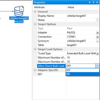 Note: This option is only available for Db2/UDB CLI, MySQL, MS SQL Server, Oracle, Informix, Sybase ASE, and Teradata 13. For other databases, the number of records in a block will default to 1 and cannot be changed. For details about loading relational targets, see Set Options for Relational Targets, and Target Properties Pane for Relational Targets.