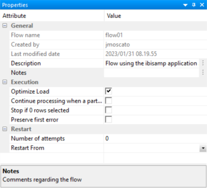 - Notes. User entered notes. These notes only appear in the properties panel and now the data flow itself. To make the notes visible in the data flow, select the Show NotesEnable Notes on the Canvas option in the Data Flow Designer Options dialog. You can add notes, as needed, to any flow object (join, select, source, target, and so on). You can easily edit and manage notes within the text box.