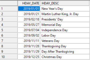 You can specify a list of dates that are designated as holidays in your company. These dates can be scheduled to be excluded, only included, or included to run with regular days in the process flow. To define a list of holidays, you must create a holiday file using a standard text editor and select the holiday file by issuing the SET command with the HDAY parameter.