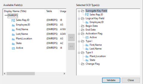 Sets slowly changing dimension attributes. This option is only available for existing relational targets and is only used by a flow when SCD is enabled in the target object.