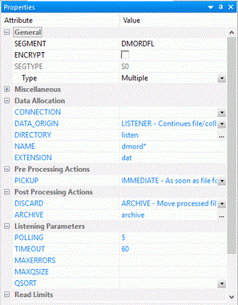 This creates a synonym that listens on the listen directory for files with names that start with dmord and an extension of data polling every 5 seconds until 60 seconds have passed without a new file. As files are processed they are archived to a directory archive. Files are processed as they arrive until 5 files or 50 records are processed.