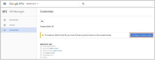Click the Create credentials dropdown list and select OAuth client ID on the Credentials screen, as shown in the following image.