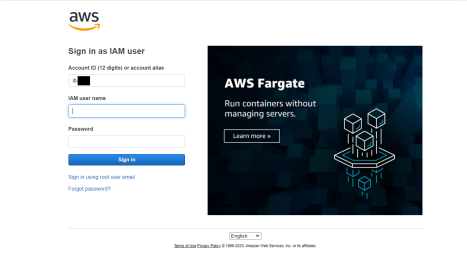 If you are not already signed into AWS, a sign-in dialog for AWS opens, as shown in the following image.