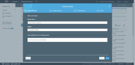 - Enter a Bucket name that is unique across all existing Bucket names in Amazon S3.