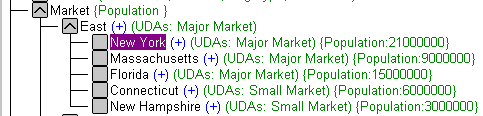 When referencing UDAs in a request, you must also reference a member of the dimension that contains the UDA. In this example, STATE is a member of the MARKET Dimension in the Master File.