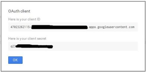 The OAuth client screen containing the Client ID and Client Secret opens, as shown in the following image.