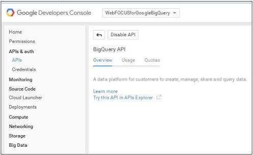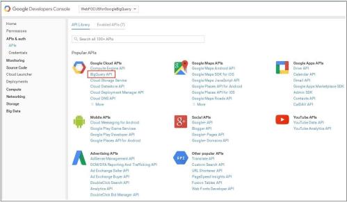 Note: The ID will be used in the Google BigQuery Adapter configuration. - Click APIs & auth in the left pane.