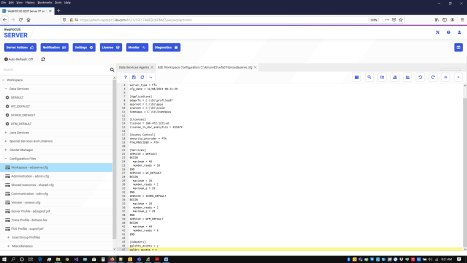 - On the WebFOCUS Reporting Server browser interface Workspace page, expand Configuration Files, edit the Workspace configuration file (edaserve.cfg), and add the attribute ggldrv_access = y under the Adapters section, as shown in the following image.