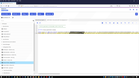 - Edit the server profile (edasprof.prf), and copy the Google Sheets connection command.
