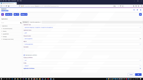 - From the Map to dropdown box, select New application (directory will be created).