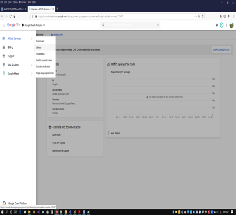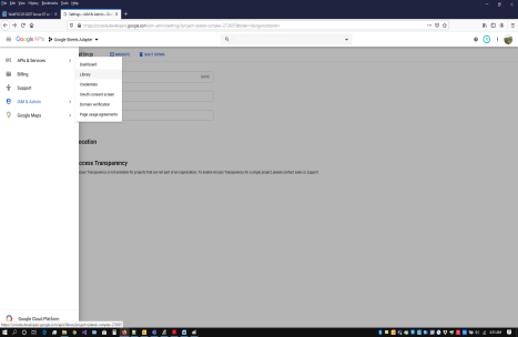 - Click the three horizontal bars indicating the Navigation menu at the top left of the screen and select APIs & Services/Library, as shown in the following image.