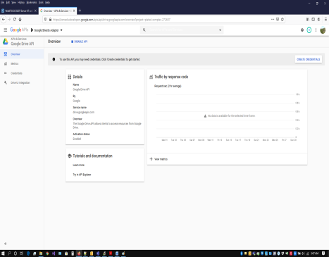 The Google Drive API page opens showing Usage information, as shown in the following image.