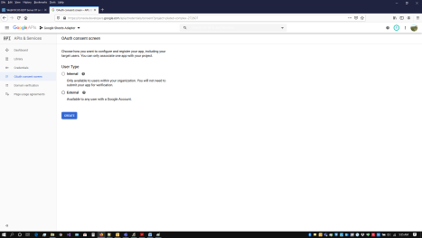 - Click the three horizontal bars indicating the Navigation menu at the top left of the screen and select APIs & Services/OAuth consent screen, as shown in the following image.