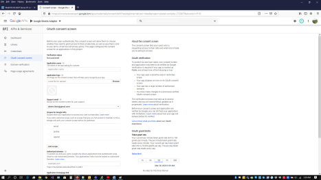 The OAuth Consent screen configuration page opens, as shown in the following image.