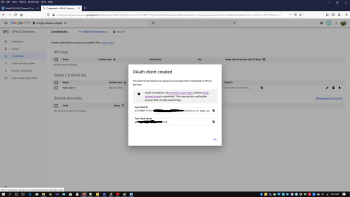 The OAuth client screen containing the Client ID and Client Secret opens, as shown in the following image.