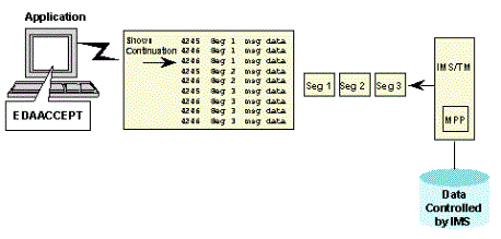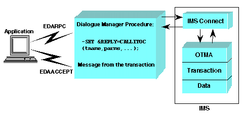 CALLIMS and CALLITOC return codes and data to the client application in a series of 72-byte messages. To retrieve the messages, the client application issues the method call EDAACCEPT.
