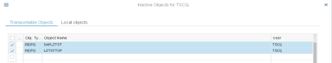 A new window lists all inactive objects. Note that the object name now begins with SAPL.