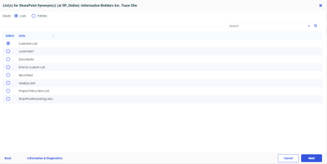 - Select the SharePoint List for which metadata is to be created and click Next.